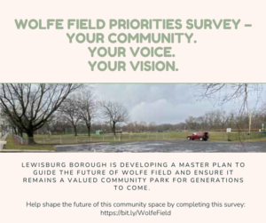 Lewisburg Borough is developing a master plan to guide the future of Wolfe Field and ensure it remains a valued community park for generations to come. Community input has been central to this effort with nearly 350 residents, stakeholders, and park users engaged so far.