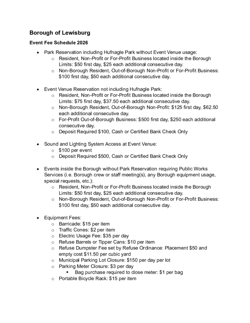 Warning: Undefined array key "file" in /home/lewisburgborough/public_html/wp-includes/media.php on line 1774 Fee Schedule 2026 EventsNovember 18, 2025 https://www.lewisburgborough.org/wp-content/uploads/LewisburgBoroughLogo-Darker_web.png 0 0 Kathy Wendt https://www.lewisburgborough.org/wp-content/uploads/LewisburgBoroughLogo-Darker_web.png Kathy Wendt2025-11-18 11:09:262025-11-18 11:09:26Fee Schedule 2026 Events
