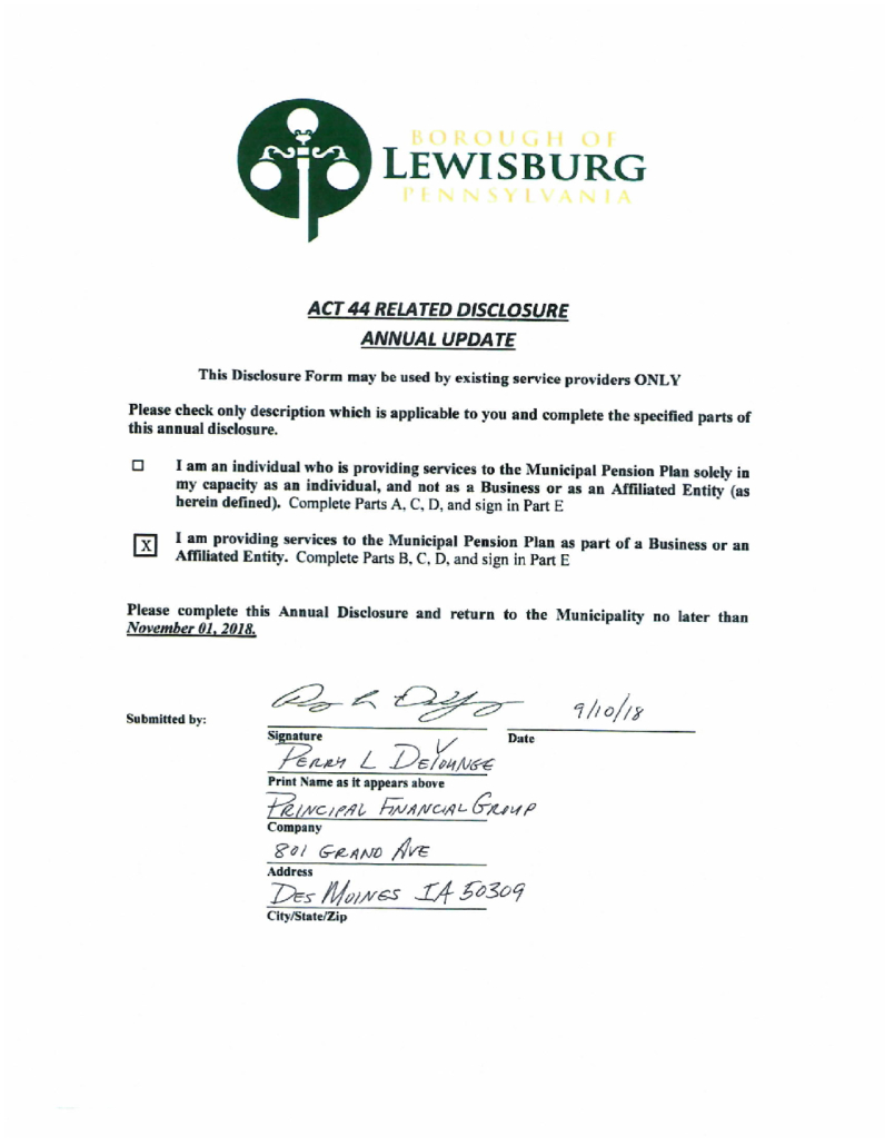 Act 44 2018 – Principal Financial Group Annual Disclosure Form Completed