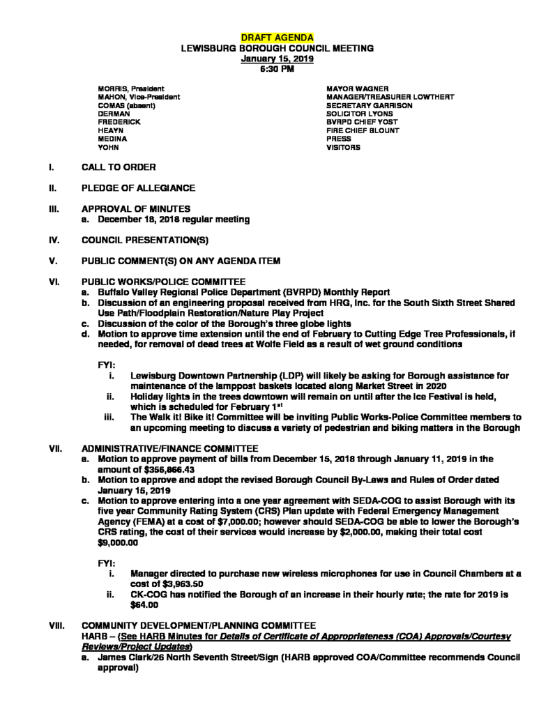 Warning: Undefined array key "file" in /home/lewisburgborough/public_html/wp-includes/media.php on line 1774 01-15-19 CouncilJanuary 15, 2019 https://www.lewisburgborough.org/wp-content/uploads/LewisburgBoroughLogo-Darker_web.png 0 0 Kathy Wendt https://www.lewisburgborough.org/wp-content/uploads/LewisburgBoroughLogo-Darker_web.png Kathy Wendt2019-01-15 13:07:592019-01-15 13:07:5901-15-19 Council