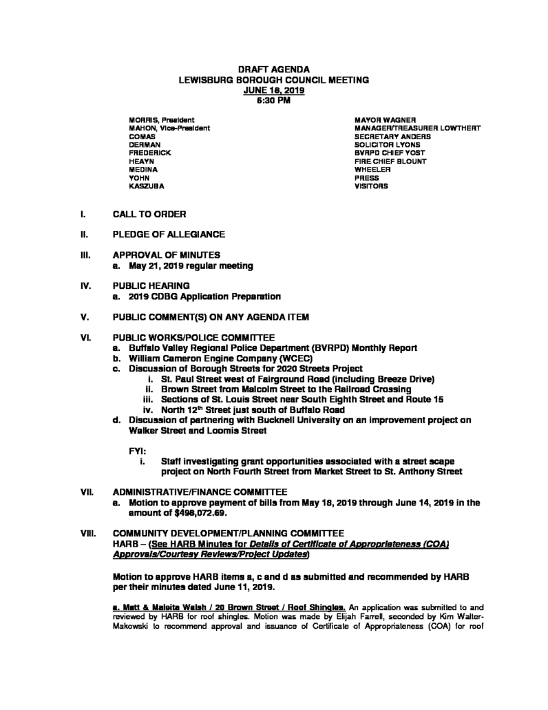 Warning: Undefined array key "file" in /home/lewisburgborough/public_html/wp-includes/media.php on line 1774 06-18-19 Draft AgendaJune 17, 2019 https://www.lewisburgborough.org/wp-content/uploads/LewisburgBoroughLogo-Darker_web.png 0 0 Kathy Wendt https://www.lewisburgborough.org/wp-content/uploads/LewisburgBoroughLogo-Darker_web.png Kathy Wendt2019-06-17 17:39:252019-06-17 17:40:4306-18-19 Draft Agenda