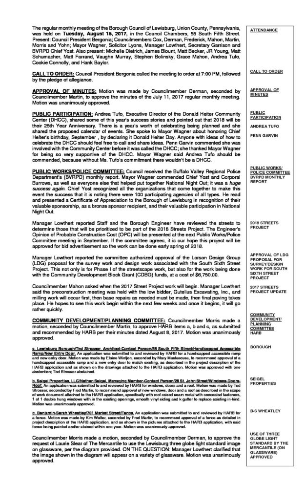 Warning: Undefined array key "file" in /home/lewisburgborough/public_html/wp-includes/media.php on line 1774 Regular Meeting on 08-15-17October 26, 2017 https://www.lewisburgborough.org/wp-content/uploads/LewisburgBoroughLogo-Darker_web.png 0 0 Kathy Wendt https://www.lewisburgborough.org/wp-content/uploads/LewisburgBoroughLogo-Darker_web.png Kathy Wendt2017-10-26 10:19:272017-10-26 13:43:15Regular Meeting on 08-15-17
