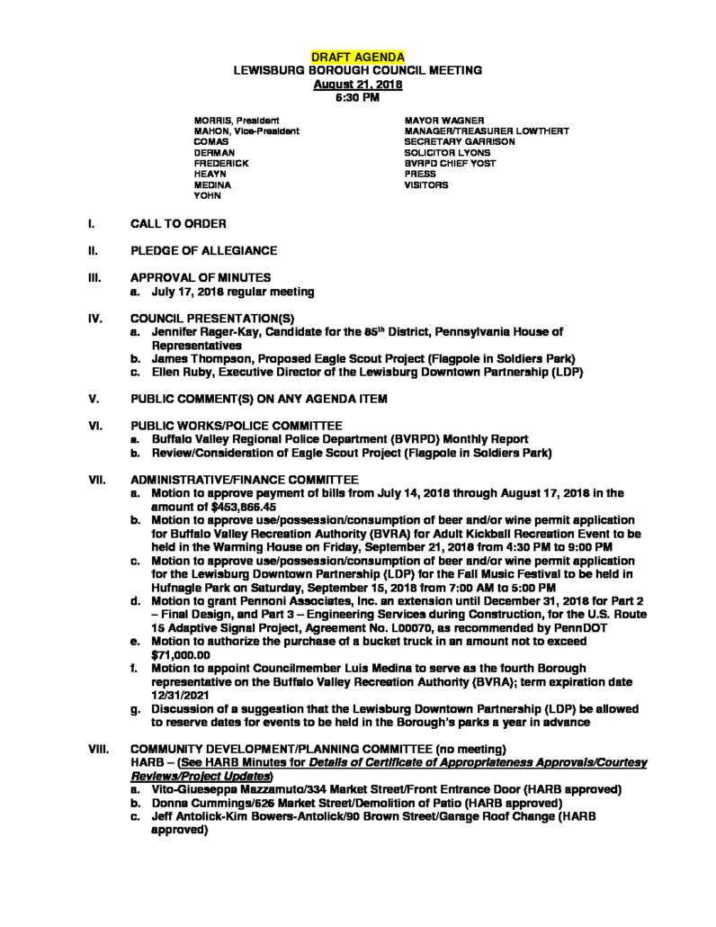 Warning: Undefined array key "file" in /home/lewisburgborough/public_html/wp-includes/media.php on line 1774 08-21-18 Revised Draft Council AgendaAugust 20, 2018 https://www.lewisburgborough.org/wp-content/uploads/LewisburgBoroughLogo-Darker_web.png 0 0 Kathy Wendt https://www.lewisburgborough.org/wp-content/uploads/LewisburgBoroughLogo-Darker_web.png Kathy Wendt2018-08-20 16:51:022018-08-20 16:51:0208-21-18 Revised Draft Council Agenda