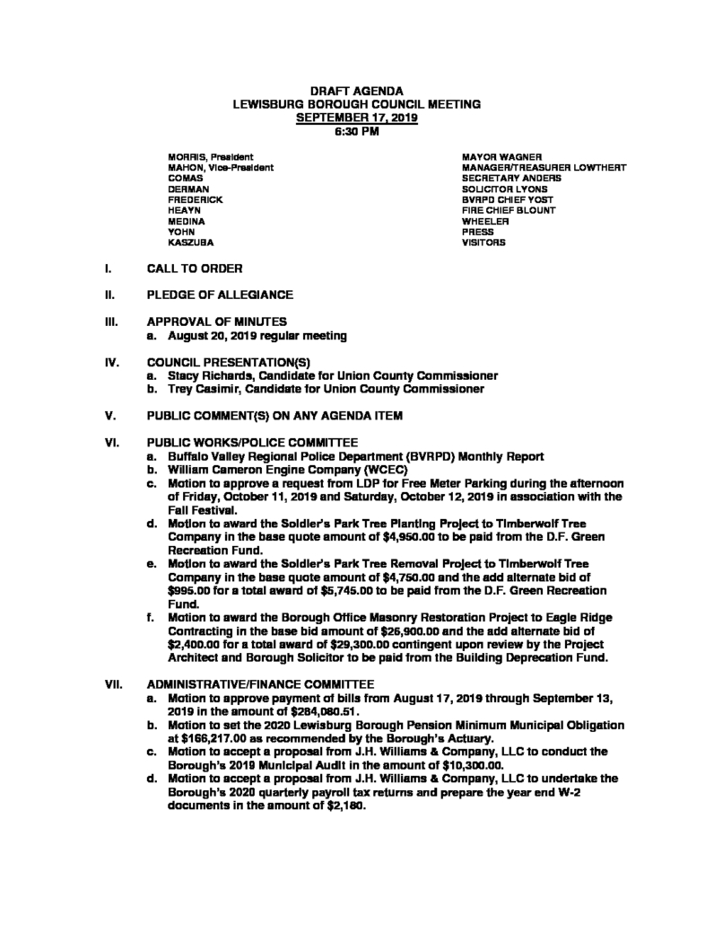 Warning: Undefined array key "file" in /home/lewisburgborough/public_html/wp-includes/media.php on line 1774 09-17-19 Draft AgendaSeptember 16, 2019 https://www.lewisburgborough.org/wp-content/uploads/LewisburgBoroughLogo-Darker_web.png 0 0 Kathy Wendt https://www.lewisburgborough.org/wp-content/uploads/LewisburgBoroughLogo-Darker_web.png Kathy Wendt2019-09-16 15:43:122019-09-16 15:44:4509-17-19 Draft Agenda