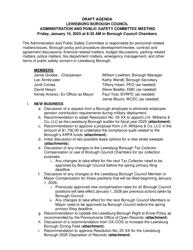 1 – January 2025 Administration and Public Safety Committee Draft Agenda