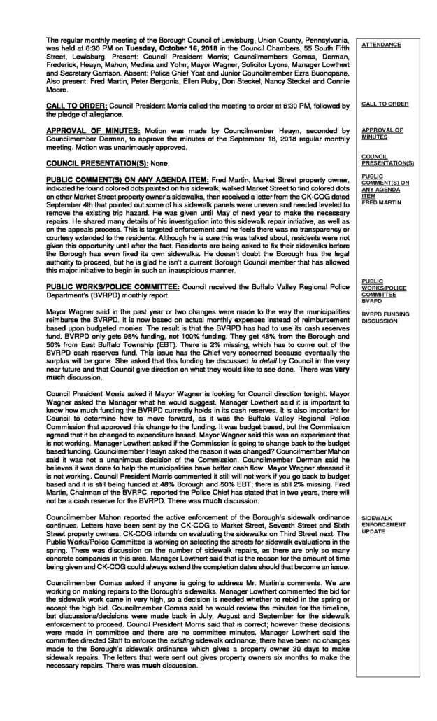 10-16-18 Regular Meeting