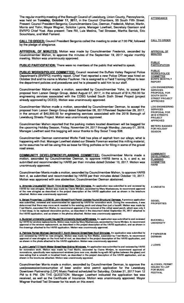 Warning: Undefined array key "file" in /home/lewisburgborough/public_html/wp-includes/media.php on line 1774 10-17-17 Regular MeetingJanuary 15, 2018 https://www.lewisburgborough.org/wp-content/uploads/LewisburgBoroughLogo-Darker_web.png 0 0 Kathy Wendt https://www.lewisburgborough.org/wp-content/uploads/LewisburgBoroughLogo-Darker_web.png Kathy Wendt2018-01-15 14:38:122018-01-15 14:44:5410-17-17 Regular Meeting