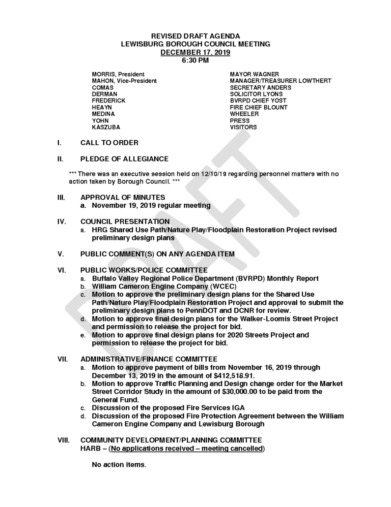 Warning: Undefined array key "file" in /home/lewisburgborough/public_html/wp-includes/media.php on line 1774 12-17-19 Draft AgendaDecember 17, 2019 https://www.lewisburgborough.org/wp-content/uploads/LewisburgBoroughLogo-Darker_web.png 0 0 Kathy Wendt https://www.lewisburgborough.org/wp-content/uploads/LewisburgBoroughLogo-Darker_web.png Kathy Wendt2019-12-17 11:58:082019-12-17 11:59:5712-17-19 Draft Agenda