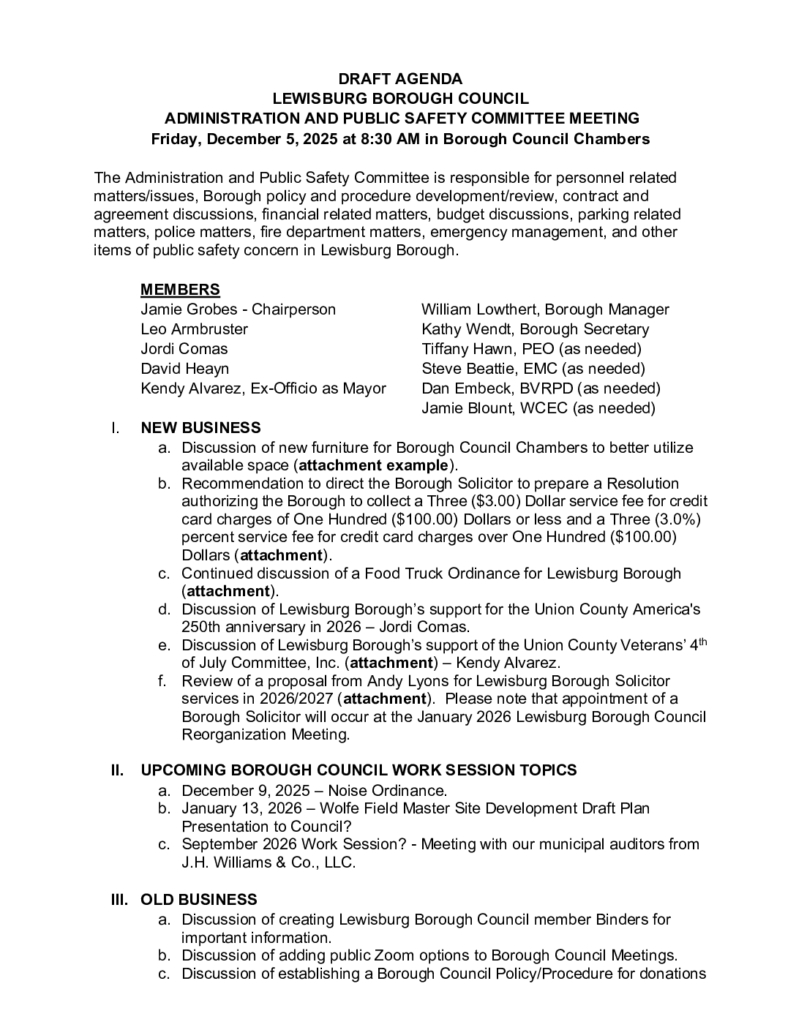 https://www.lewisburgborough.org/wp-content/uploads/LewisburgBoroughLogo-Darker_web.png00Kathy Wendthttps://www.lewisburgborough.org/wp-content/uploads/LewisburgBoroughLogo-Darker_web.pngKathy Wendt2025-12-01 11:54:242025-12-01 11:54:2412 – December 2025 Administration and Public Safety Committee Draft Agenda