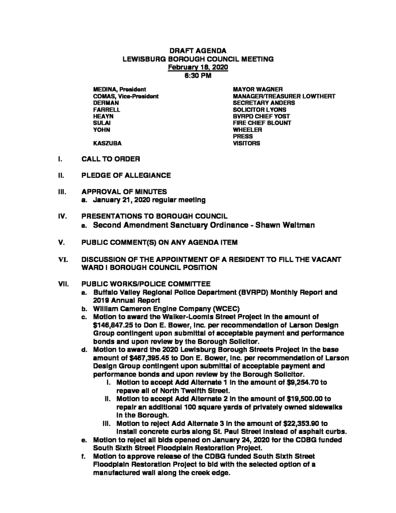 Warning: Undefined array key "file" in /home/lewisburgborough/public_html/wp-includes/media.php on line 1774 2-18-20 CouncilFebruary 17, 2020 https://www.lewisburgborough.org/wp-content/uploads/LewisburgBoroughLogo-Darker_web.png 0 0 Kathy Wendt https://www.lewisburgborough.org/wp-content/uploads/LewisburgBoroughLogo-Darker_web.png Kathy Wendt2020-02-17 14:41:542020-02-17 14:43:322-18-20 Council