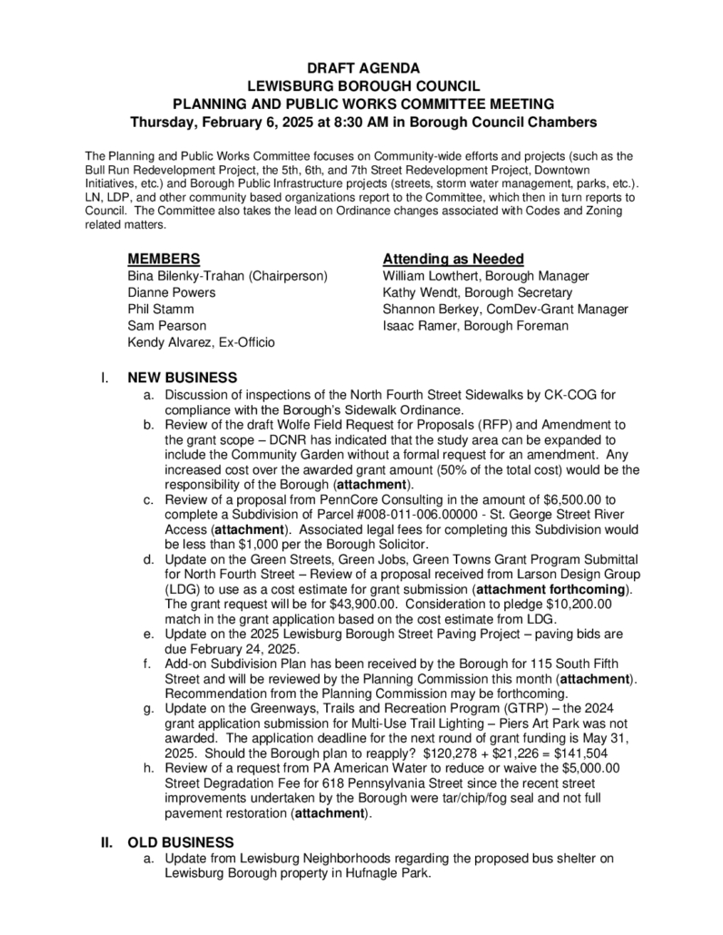 Warning: Undefined array key "file" in /home/lewisburgborough/public_html/wp-includes/media.php on line 1774 2 – February 2025 Planning-Public Works Committee Draft AgendaFebruary 3, 2025 https://www.lewisburgborough.org/wp-content/uploads/LewisburgBoroughLogo-Darker_web.png 0 0 Kathy Wendt https://www.lewisburgborough.org/wp-content/uploads/LewisburgBoroughLogo-Darker_web.png Kathy Wendt2025-02-03 14:04:272025-02-03 14:04:272 – February 2025 Planning-Public Works Committee Draft Agenda