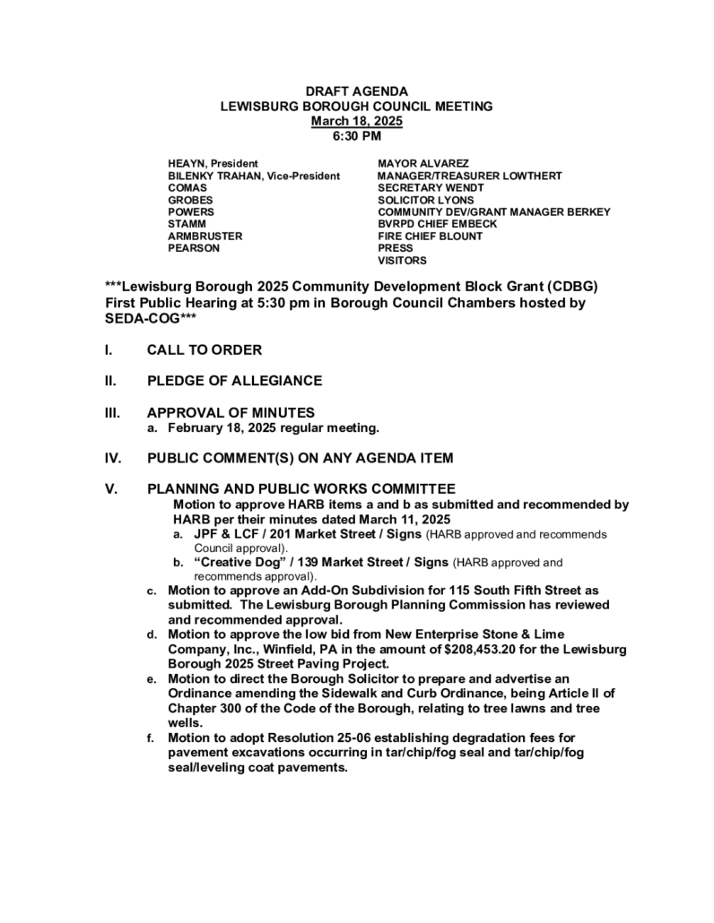 Warning: Undefined array key "file" in /home/lewisburgborough/public_html/wp-includes/media.php on line 1774 3-18-25 Council Draft Agenda 3-14-25March 14, 2025 https://www.lewisburgborough.org/wp-content/uploads/LewisburgBoroughLogo-Darker_web.png 0 0 Kathy Wendt https://www.lewisburgborough.org/wp-content/uploads/LewisburgBoroughLogo-Darker_web.png Kathy Wendt2025-03-14 13:41:582025-03-14 13:41:583-18-25 Council Draft Agenda 3-14-25