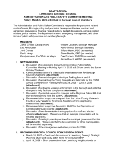https://www.lewisburgborough.org/wp-content/uploads/LewisburgBoroughLogo-Darker_web.png00Kathy Wendthttps://www.lewisburgborough.org/wp-content/uploads/LewisburgBoroughLogo-Darker_web.pngKathy Wendt2026-03-02 11:56:332026-03-02 11:56:333 – March 2026 Administration and Public Safety Committee Draft Agenda