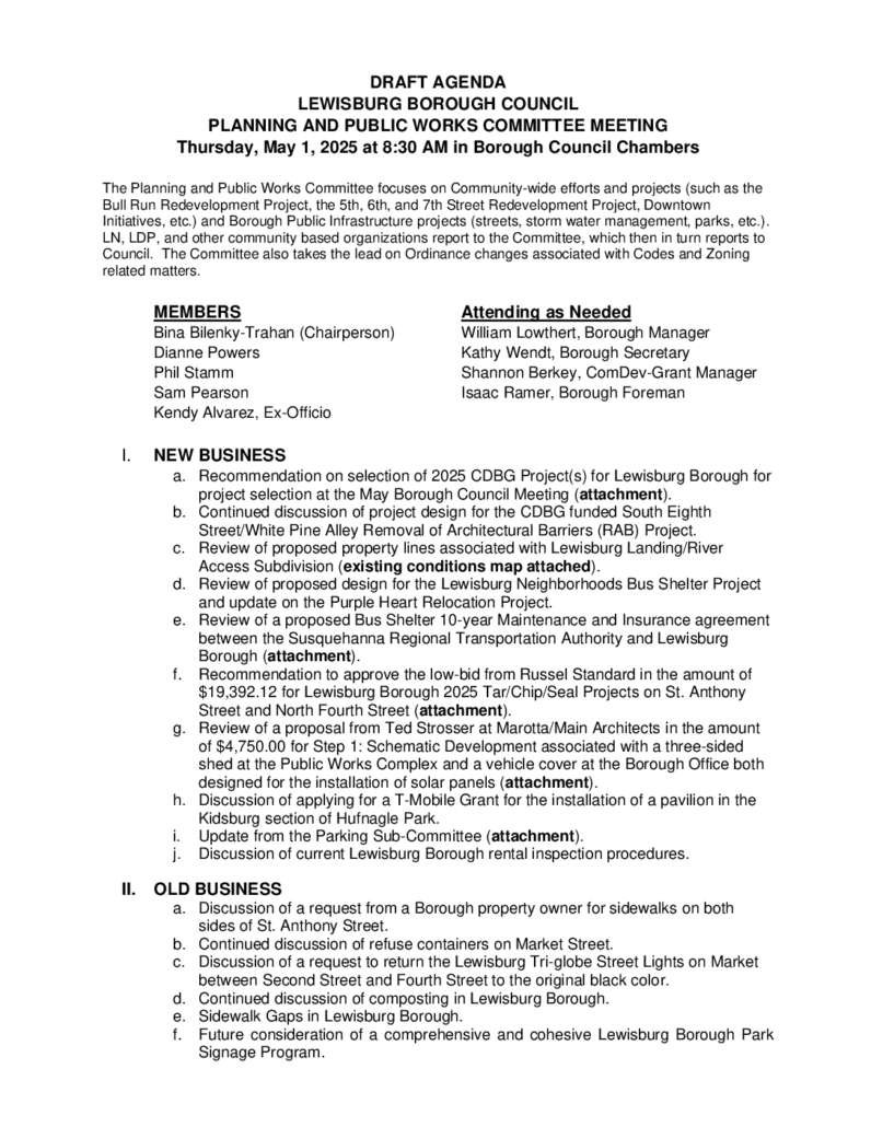 Warning: Undefined array key "file" in /home/lewisburgborough/public_html/wp-includes/media.php on line 1774 5 – May 2025 Planning-Public Works Committee Draft AgendaApril 25, 2025 https://www.lewisburgborough.org/wp-content/uploads/LewisburgBoroughLogo-Darker_web.png 0 0 Kathy Wendt https://www.lewisburgborough.org/wp-content/uploads/LewisburgBoroughLogo-Darker_web.png Kathy Wendt2025-04-25 15:37:322025-04-25 15:37:325 – May 2025 Planning-Public Works Committee Draft Agenda