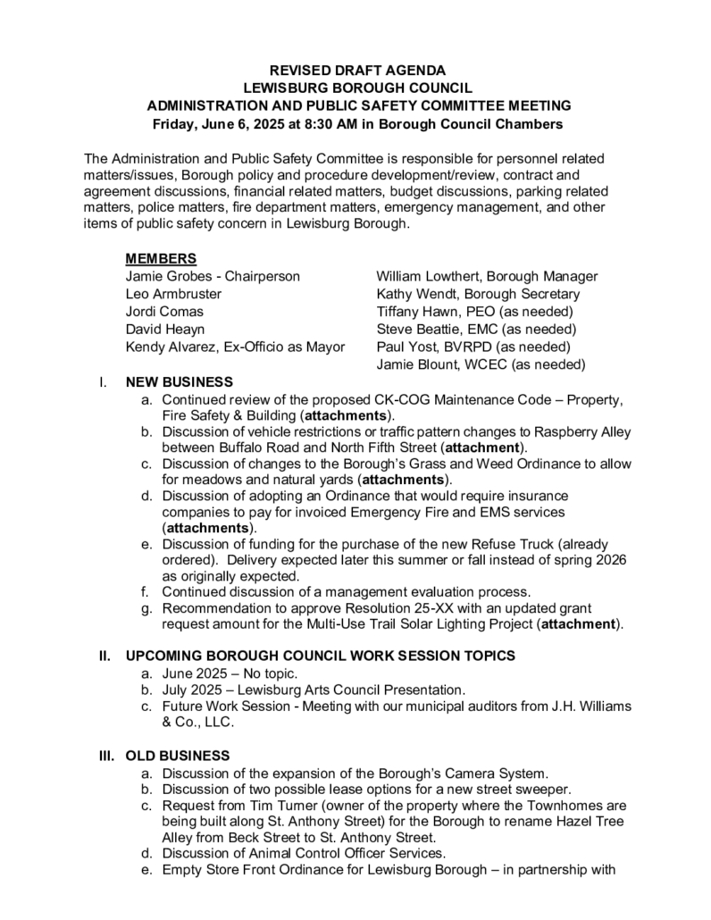 Warning: Undefined array key "file" in /home/lewisburgborough/public_html/wp-includes/media.php on line 1774 6 – June 2025 Administration and Public Safety Committee Draft Agenda RevisedJune 5, 2025 https://www.lewisburgborough.org/wp-content/uploads/LewisburgBoroughLogo-Darker_web.png 0 0 Kathy Wendt https://www.lewisburgborough.org/wp-content/uploads/LewisburgBoroughLogo-Darker_web.png Kathy Wendt2025-06-05 12:16:502025-06-05 12:16:506 – June 2025 Administration and Public Safety Committee Draft Agenda Revised