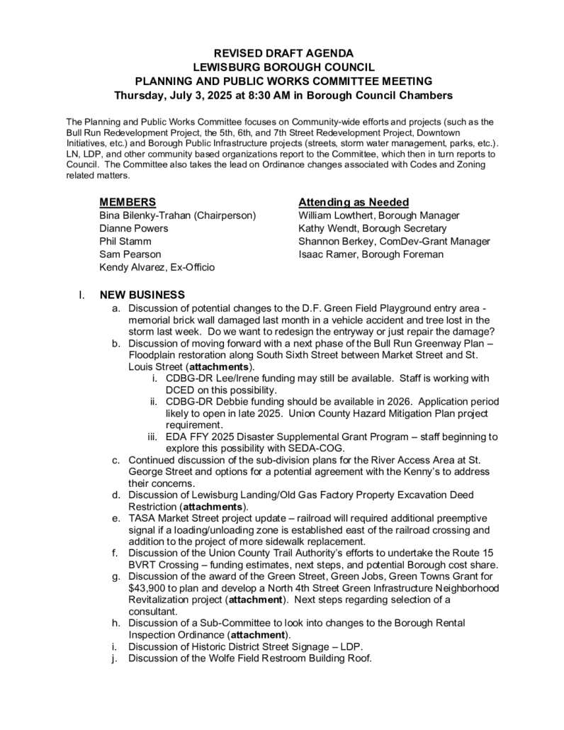 Warning: Undefined array key "file" in /home/lewisburgborough/public_html/wp-includes/media.php on line 1774 7 – July 2025 Planning-Public Works Committee Draft Agenda RevisedJuly 2, 2025 https://www.lewisburgborough.org/wp-content/uploads/LewisburgBoroughLogo-Darker_web.png 0 0 Kathy Wendt https://www.lewisburgborough.org/wp-content/uploads/LewisburgBoroughLogo-Darker_web.png Kathy Wendt2025-07-02 07:48:592025-07-02 07:48:597 – July 2025 Planning-Public Works Committee Draft Agenda Revised