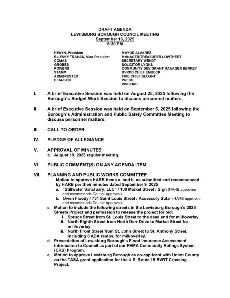 Warning: Undefined array key "file" in /home/lewisburgborough/public_html/wp-includes/media.php on line 1774 9-16-25 Council Draft AgendaSeptember 12, 2025 https://www.lewisburgborough.org/wp-content/uploads/LewisburgBoroughLogo-Darker_web.png 0 0 Kathy Wendt https://www.lewisburgborough.org/wp-content/uploads/LewisburgBoroughLogo-Darker_web.png Kathy Wendt2025-09-12 13:45:092025-09-12 13:45:099-16-25 Council Draft Agenda