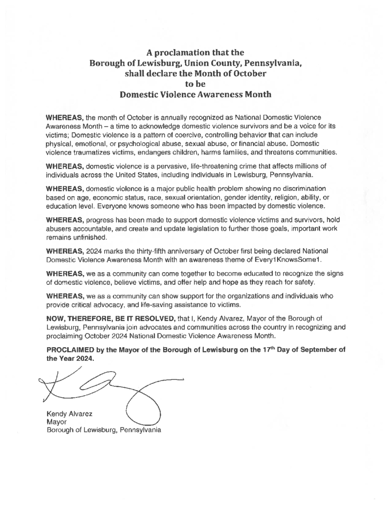 Warning: Undefined array key "file" in /home/lewisburgborough/public_html/wp-includes/media.php on line 1774 Domestic Violence Awareness Month Proclamation 2024-signedJanuary 22, 2025 https://www.lewisburgborough.org/wp-content/uploads/LewisburgBoroughLogo-Darker_web.png 0 0 Kathy Wendt https://www.lewisburgborough.org/wp-content/uploads/LewisburgBoroughLogo-Darker_web.png Kathy Wendt2025-01-22 11:31:042025-01-22 11:31:04Domestic Violence Awareness Month Proclamation 2024-signed