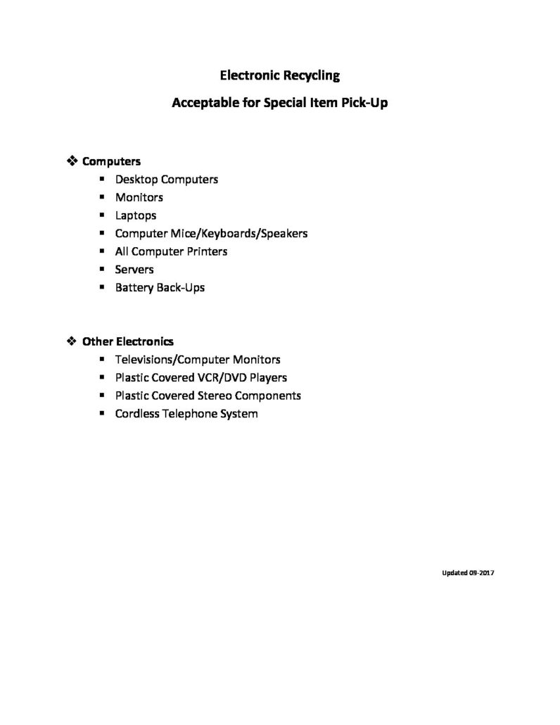 List of Acceptable Electronics for Recycling
